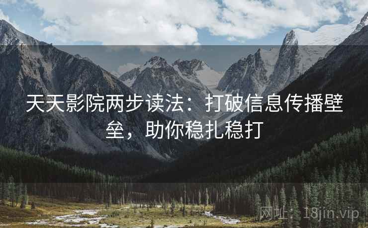 在当今信息爆炸的时代,我们每天都会接触到大量的信息,从新闻、社交媒体到专业文章,各种信息来源层出不穷。如何在这片信息海洋中找到真正有价值的信息,并将其有效地传播和利用,成为了一个亟待解决的问题。为了帮助你应对这一挑战,我们将介绍一种简洁有效的“天天影院两步读法”,这将会帮助你更好地掌控信息,提高信息传播和利用的效率。