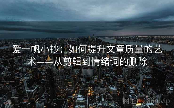 在写作过程中,我们需要不断地优化和完善文章,以便更好地传达信息并吸引读者。本文将继续探讨如何通过“爱一帆小抄:看剪辑是不是暗示因果→做把情绪词删掉再读→给句子去噪”的方法,进一步提升文章质量。