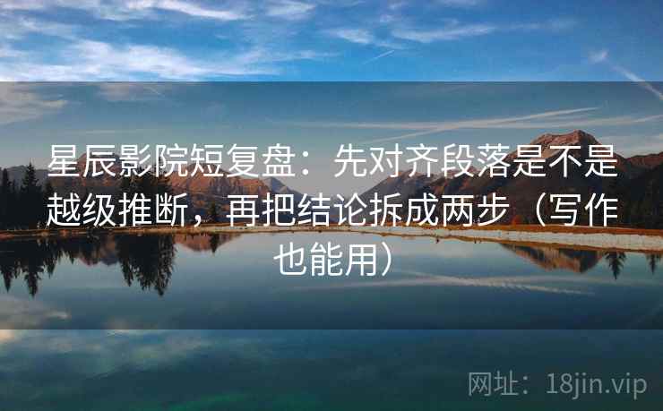 在写作和叙事中,我们常常会遇到一个问题:如何在不违背逻辑的前提下,将故事推向一个更高的情感或情节高潮。这种技巧在电影、小说甚至网络文学中都非常有效。今天,我们将从星辰影院短复盘的角度,探讨一种特别有效的方法:先对齐段落是不是越级推断,再把结论拆成两步。